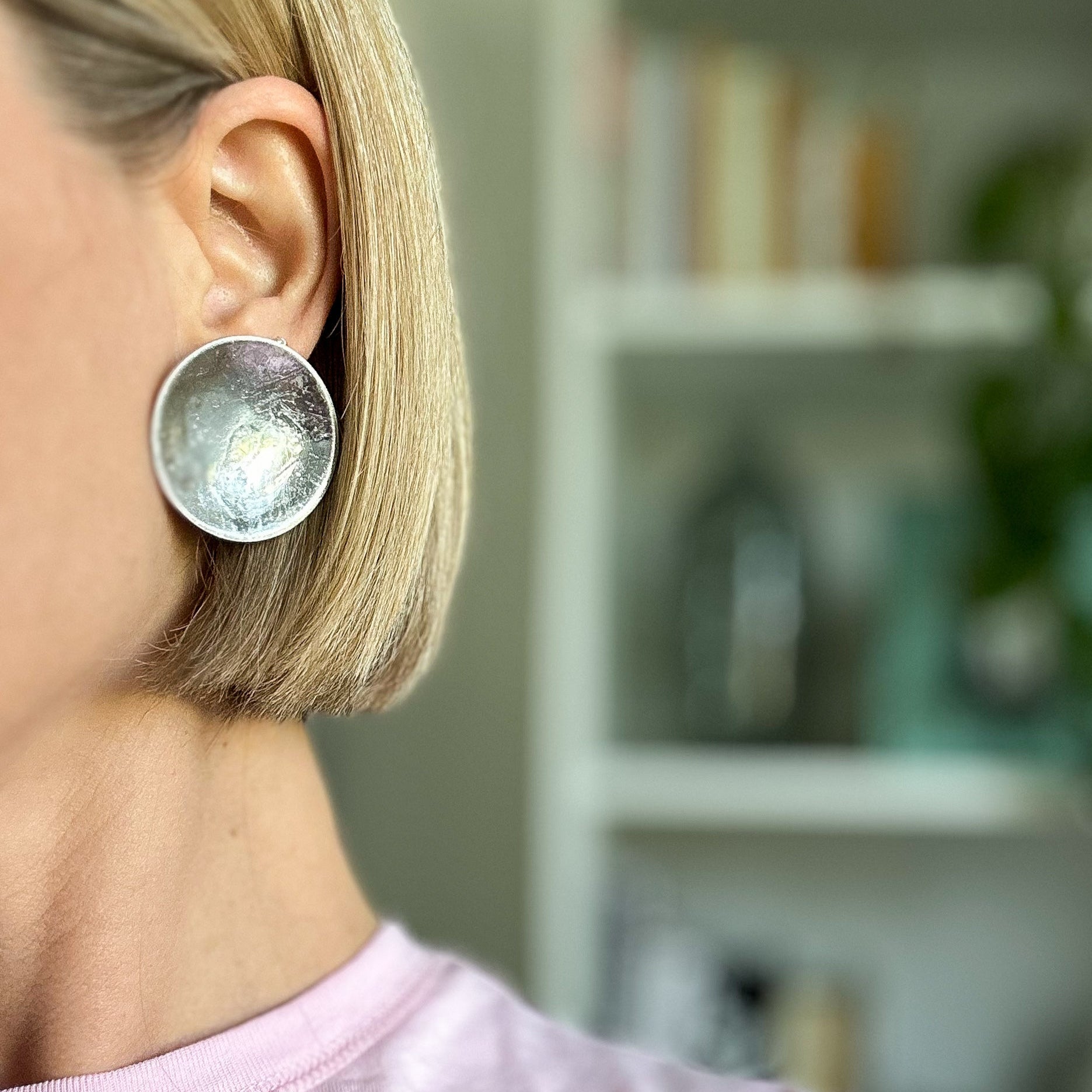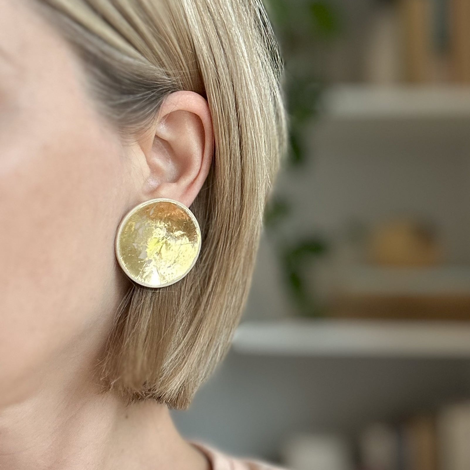 Inspired by the quiet beauty of the moon, these convex statement studs bring a celestial touch to your everyday style. Handcrafted from polymer clay and coated in a glossy resin for a smooth, luminous finish, they capture the soft glow and subtle curves of a moonlit sky. Available in radiant gold, classic silver, and a gentle soft beige, each pair offers its own timeless charm.